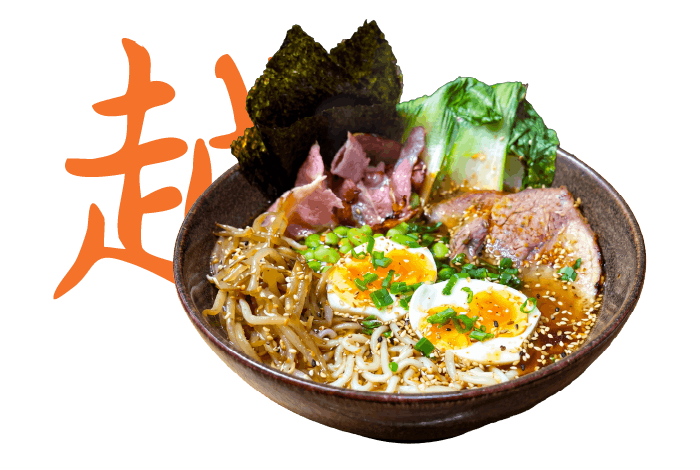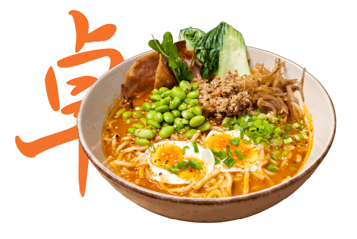 wywar drobiowy, orzechowe tare, mielona wieprzowina, makaron pszenny, jajko, pak choi, shitake, edamame, kiełki, nori, zielona cebulka